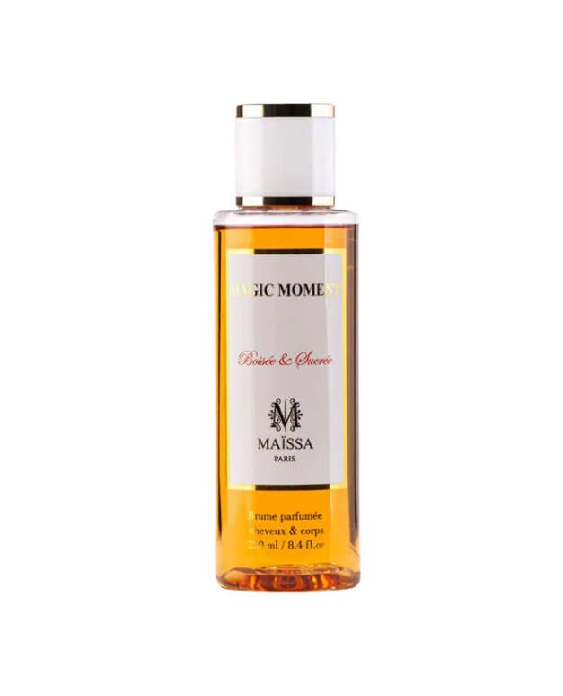 Découvrez Brume Magic Moment - Maïssa Paris 250ml, une fragrance douce, enveloppante et sensuelle qui évoque un instant magique de tendresse et de réconfort. Avec ses accords gourmands, floraux et chauds, cette brume crée une expérience olfactive inoubliable qui vous transporte dans un monde de douceur et de sophistication.
