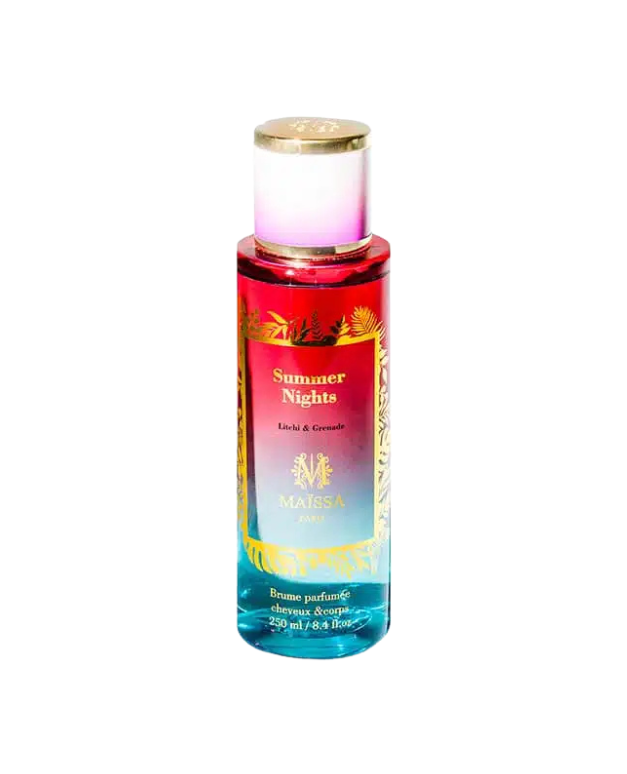 Découvrez Brume Summer Nights - Maïssa Paris 250ml, une fragrance envoûtante qui capture la magie des soirées d’été, où la chaleur du soleil rencontre la fraîcheur de la nuit. Cette brume légère et rafraîchissante associe des notes fruitées éclatantes, des fleurs délicates et une base boisée et musquée pour offrir une expérience olfactive à la fois vivifiante et sensuelle.