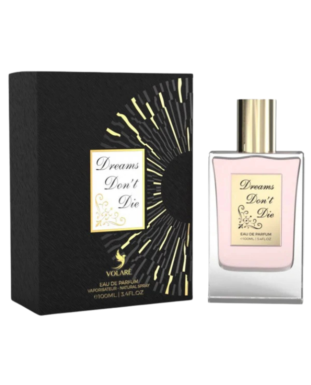 Découvrez Dreams Don’t Die – Volaré 100ml, une fragrance envoûtante et gourmande qui allie des notes florales délicates et des accords sucrés, créant une expérience olfactive unique et mémorable. Parfaitement équilibrée, cette composition séduit les sens avec sa richesse florale fraîche et son fond doux et sucré, offrant une aura captivante et sensuelle.
